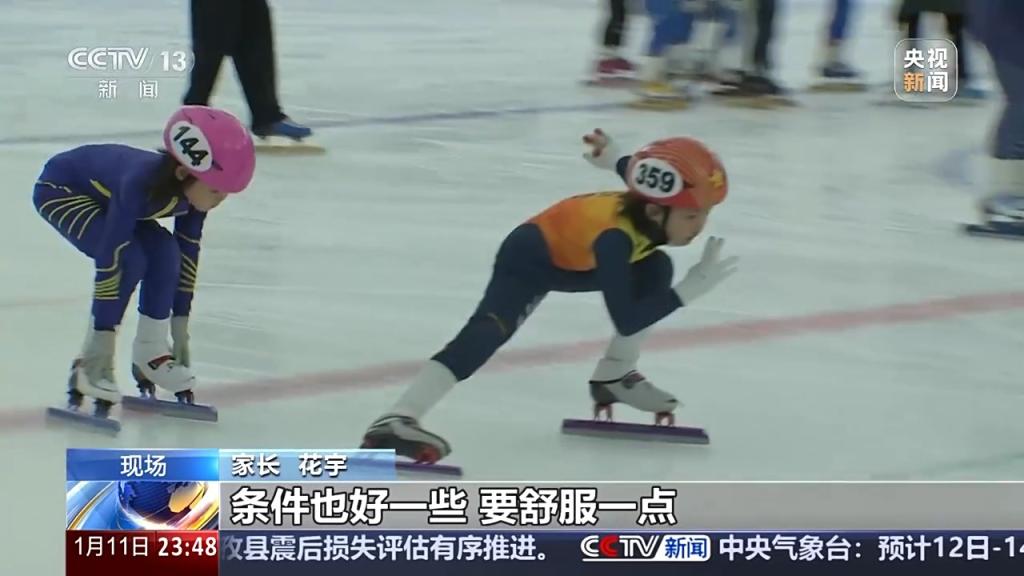 晚上八点,在齐门体育学院气膜溜冰馆,12岁的朱胜雨正和队友们在冰面优势驰电掣,学习短谈速滑快要3年,他说我方越来越可爱这项畅通。
