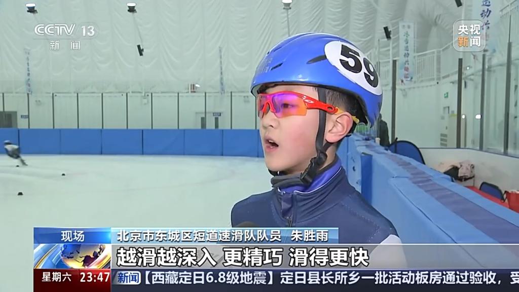 北京市东城区短谈速滑队队员 朱胜雨:我以为特别好玩儿,越滑越久了,更小巧、滑得更快。风从耳边呼呼地闪过,嗅觉特别有竖立感。