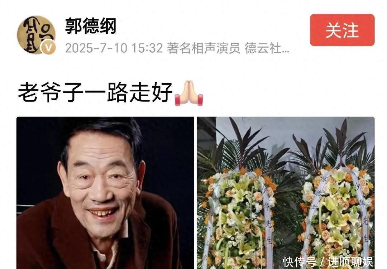 说说郭德纲吧,固然他和杨少华之前有点小矛盾,但濒临死人,他依然很正经。只简短说了句“老爷子沿路走好”,配上杨少华的像片和德云社送的花圈,礼节拿合手得刚刚好,不丰不俭,恰到公正。
