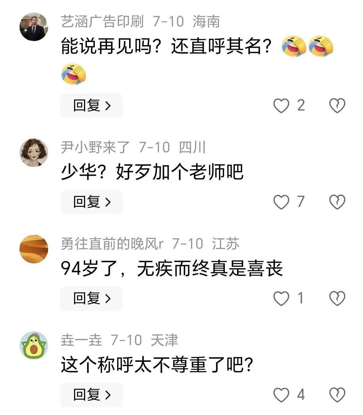 不少网友看到他这样称号,凯旋喷他没功令,以为94岁的杨老爷子被叫“少华”太不尊重了。毕竟在我们中国文化里,长辈一般不会用这样卤莽的名字称号,更无须说那年齿和履历了。网友说,要是是长辈给晚辈起混名,倒无妨,但反过来,昭着没章程。以至连带着把李玉刚家庭教师一并质疑,说他没涵养。