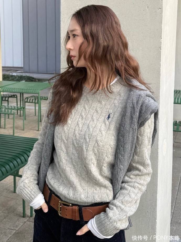 下半身玄色直筒牛仔裤修身显瘦,均衡了上半身叠穿的稳固感,让举座造型更显利落;棕色守旧腰带是整套穿搭的 “灵魂配饰”,棕色与灰色、玄色酿成撞色,冲破了基础色的千里闷,守旧的项目增添了前锋感,同期优化了体魄比例,让腰线更明晰。