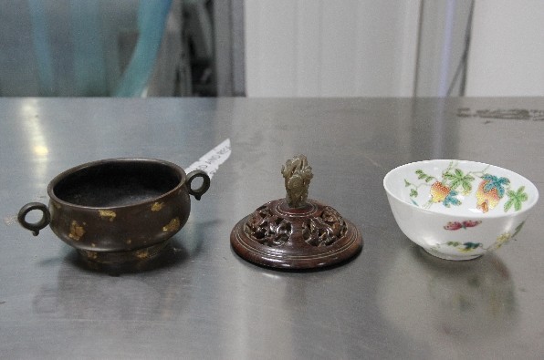 海关关员在对一件讲演品名为“连气儿件”的出境快件抓行搜检时,发现该快件内实质为炉、瓷碗等物品。经辽宁省文物考古商议院签订,其中1件香炉盖上装有清代青玉花鸟纹盖钮1件,1件香炉为清代双环耳铜炉,1件瓷碗为民国粉彩瓜碟纹碗,均属于国度辞谢或限定出境的一般文物。