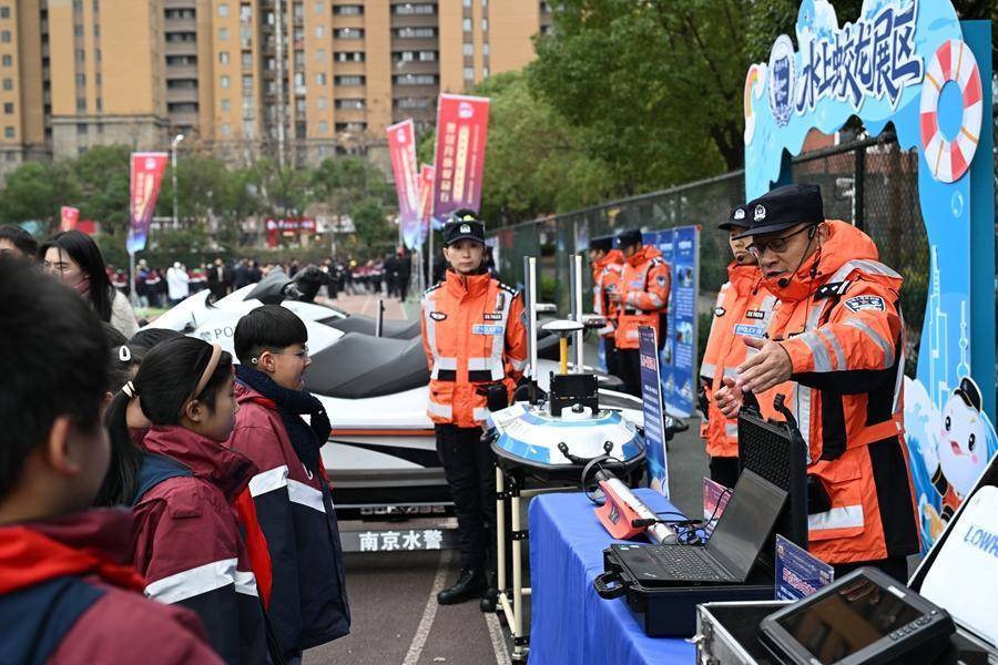 同学们在水上蛟龙展区不雅看展示。专揽方供图